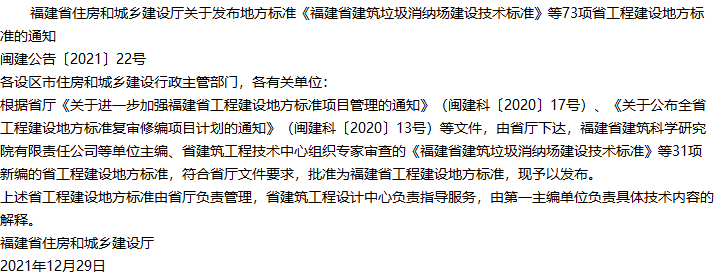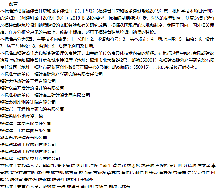 福建省建筑垃圾消纳场建设技术标准收藏