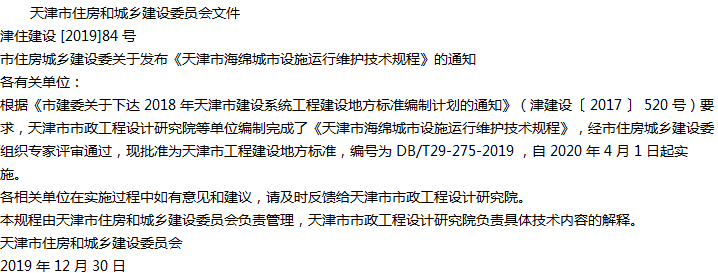 天津市海绵城市设施运行维护技术规程收藏