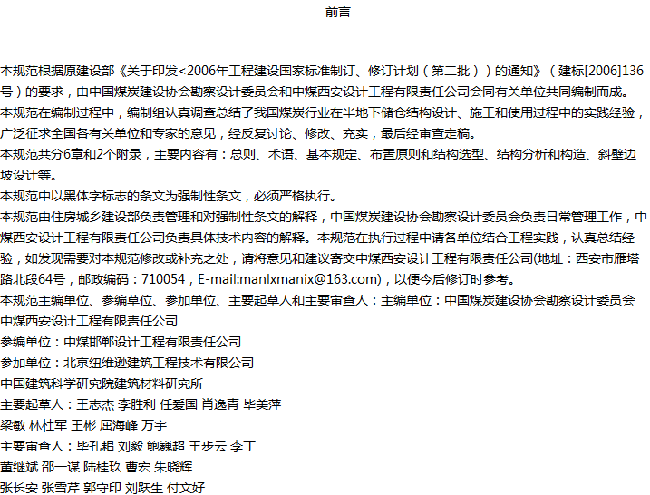 煤炭工业半地下储仓建筑结构设计规范收藏