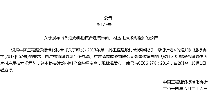 改性无机粉复合建筑饰面片材应用技术规程收藏