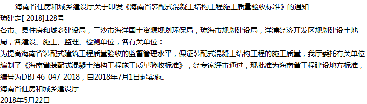 海南省装配式混凝土结构工程施工质量验收标准收藏
