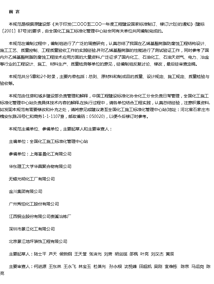 乙烯基酯树脂防腐蚀工程技术规范收藏