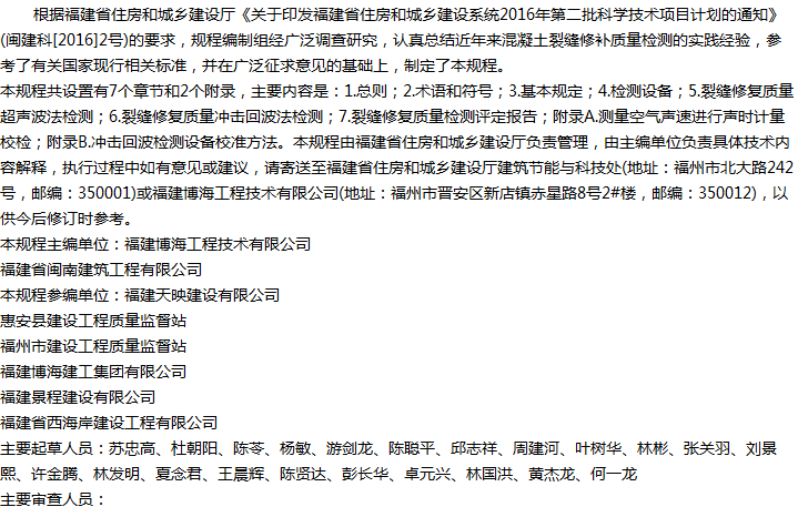 混凝土裂缝注浆填充修补质量检测技术规程收藏