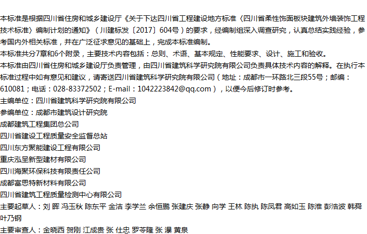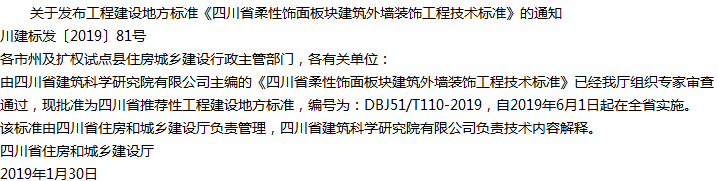 四川省柔性饰面板块建筑外墙装饰工程技术标准收藏