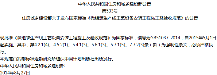 微组装生产线工艺设备安装工程施工及验收规范收藏