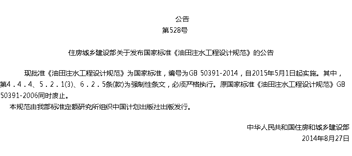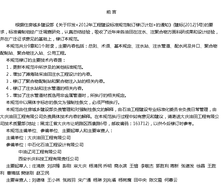 油田注水工程设计规范收藏