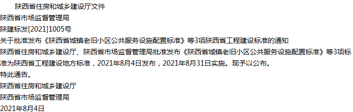 陕西省城镇老旧小区公共服务设施配置标准收藏