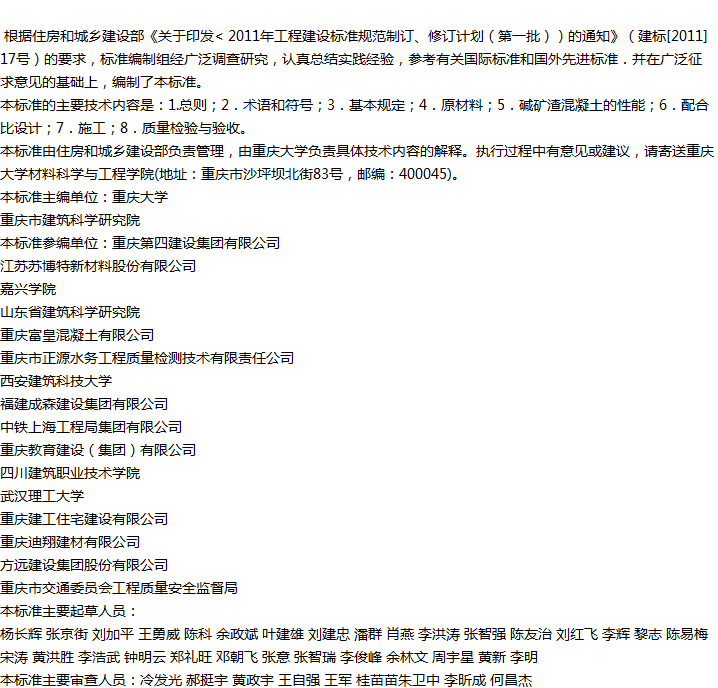 碱矿渣混凝土应用技术标准收藏