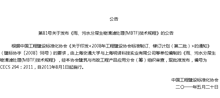 雨、污水分层生物滴滤处理(MBTF)技术规程收藏