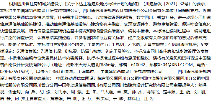 当前位置:首页 > 标准规范 > 四川省建筑物信息通信基础设施建设标准 <返回
