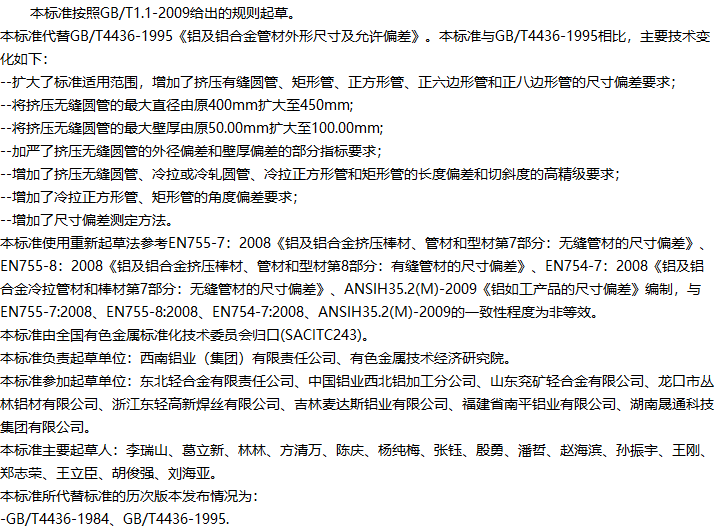铝及铝合金管材外形尺寸及允许偏差收藏