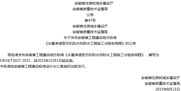 水基渗透型无机防水剂防水工程施工与验收规程收藏