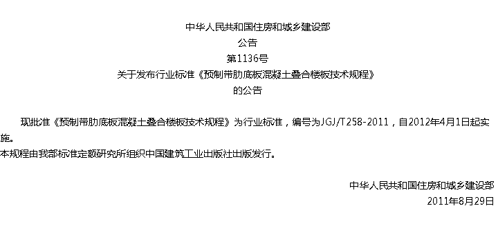 预制带肋底板混凝土叠合楼板技术规程收藏