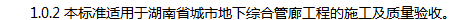 湖南省城市地下综合管廊工程施工及质量验收标准收藏