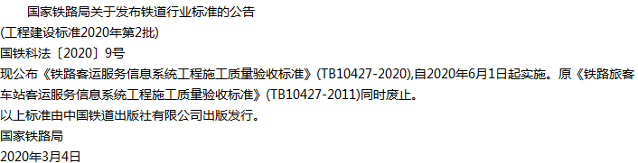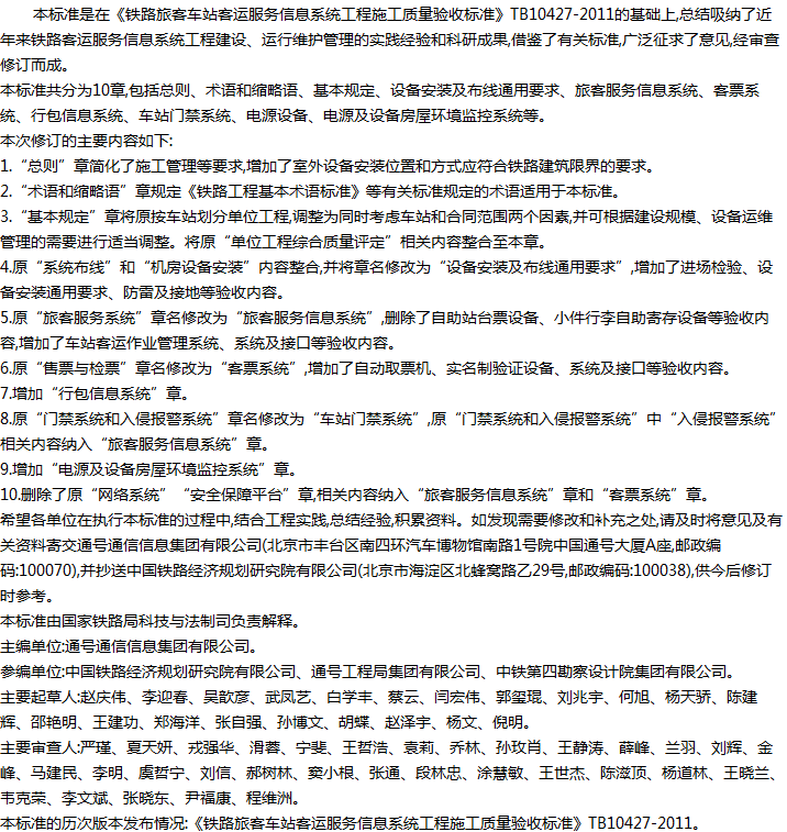 铁路客运服务信息系统工程施工质量验收标准收藏