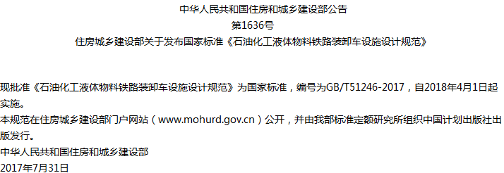 石油化工液体物料铁路装卸车设施设计规范收藏