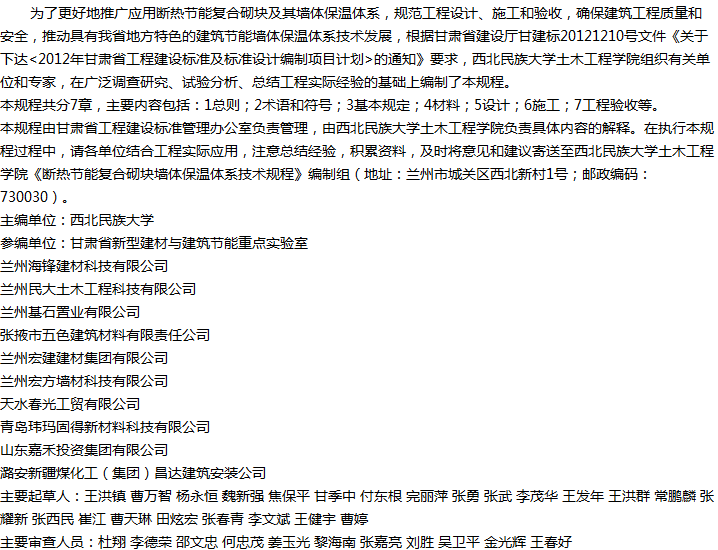 断热节能复合砌块墙体保温体系统技术规程收藏