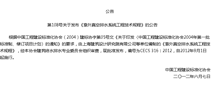 室外真空排水系统工程技术规程收藏