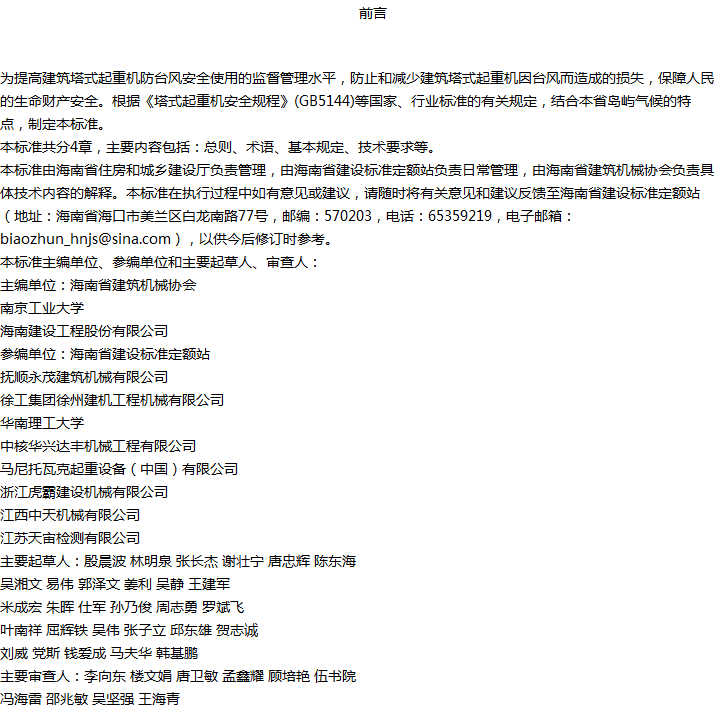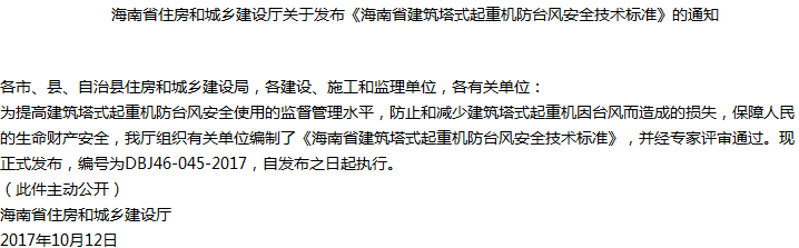 海南省建筑塔式起重机防台风安全技术标准收藏