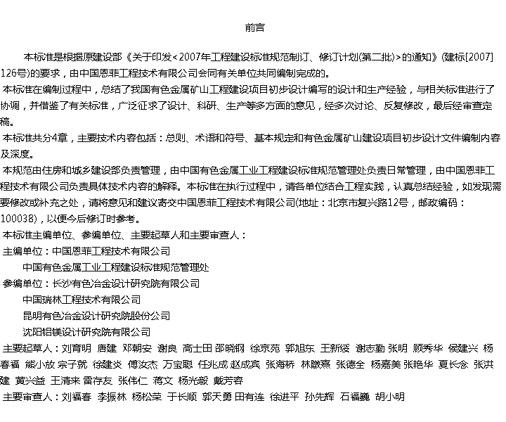 有色金属矿山工程建设项目设计文件编制标准收藏