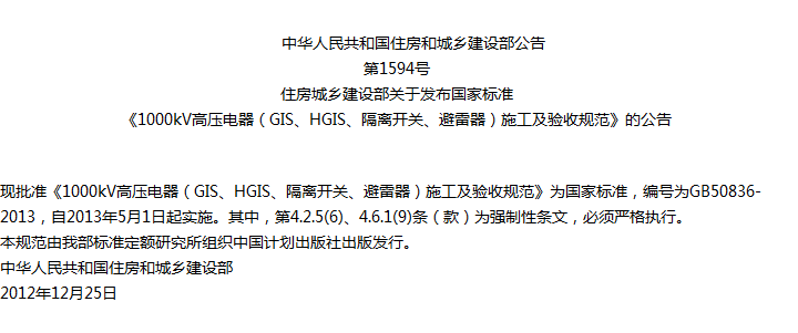 1000kV高压电器(GIS、HGIS、隔离开关、避雷器)施工及验收规范