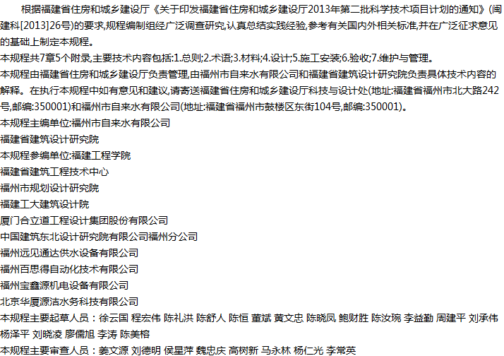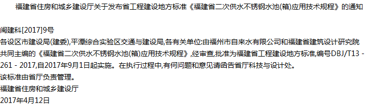 福建省二次供水不锈钢水池(箱)应用技术规程收藏