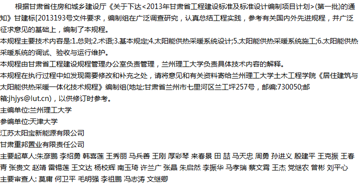 居住建筑与太阳能供热采暖一体化技术规程收藏