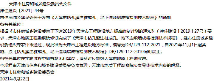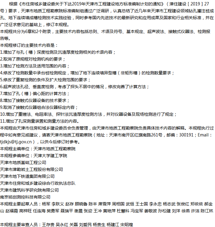 天津市钻孔灌注桩成孔、地下连续墙成槽检测技术规程收藏