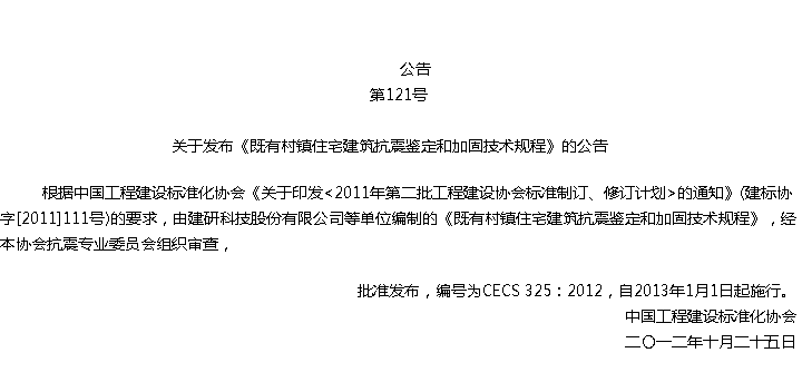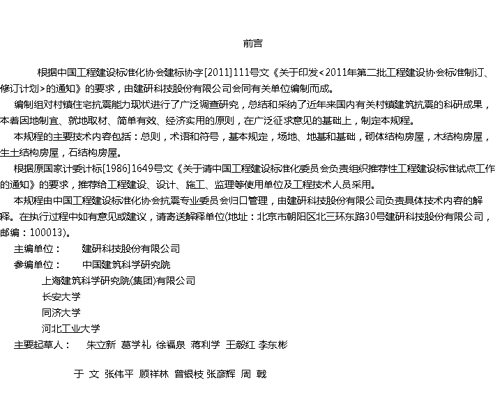 既有村镇住宅建筑抗震鉴定和加固技术规程收藏