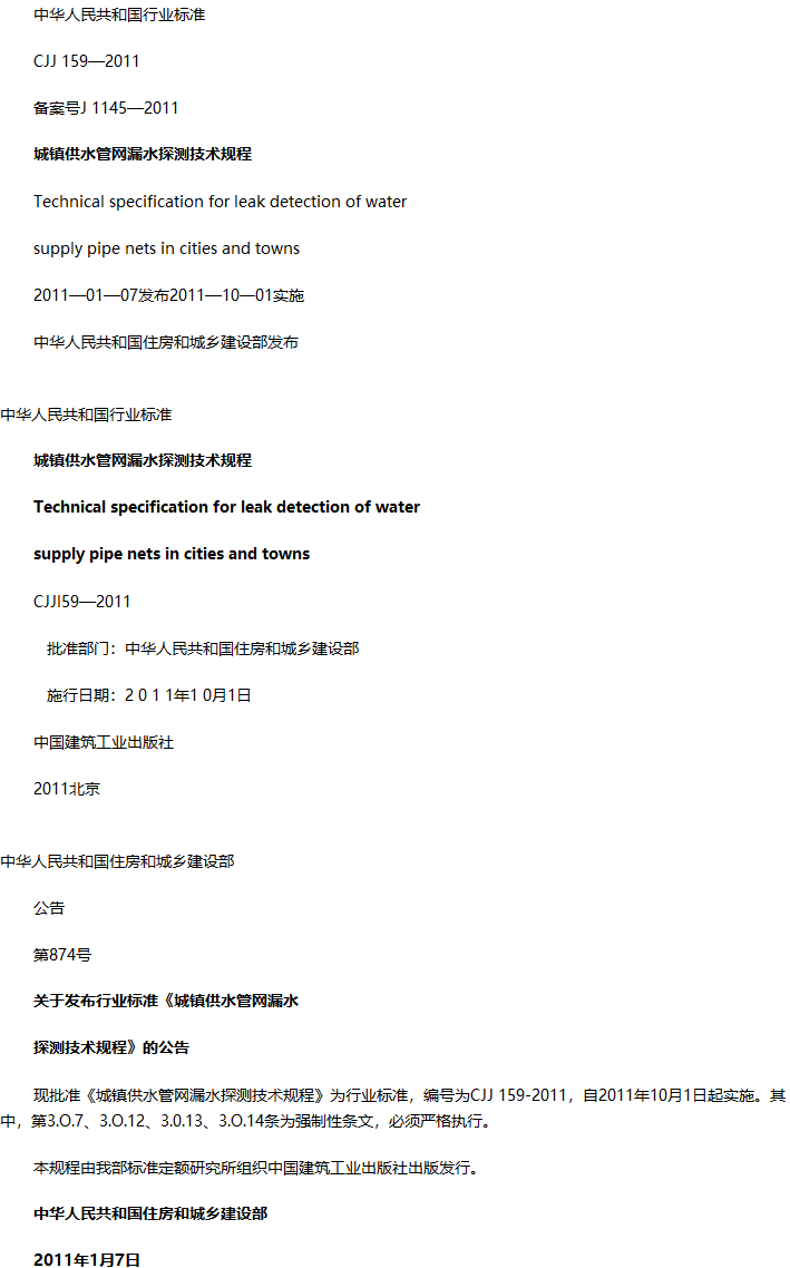 城镇供水管网漏水探测技术规程收藏