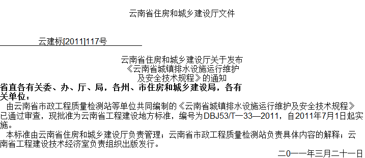 云南省城镇排水设施运行维护及安全技术规程收藏