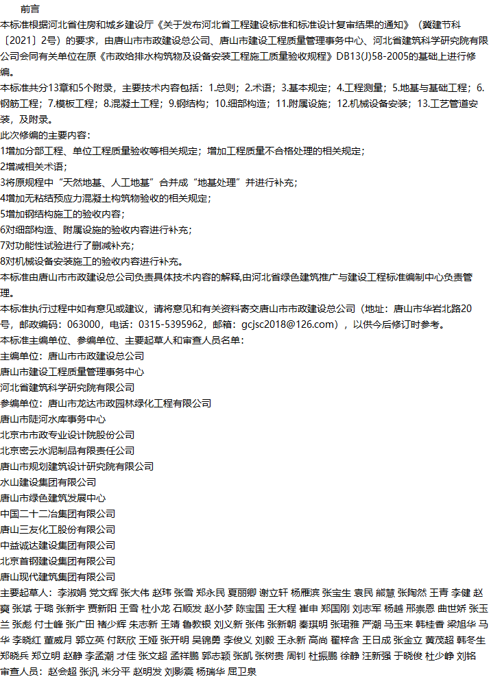 市政给排水构筑物及设备安装工程施工质量验收标准收藏