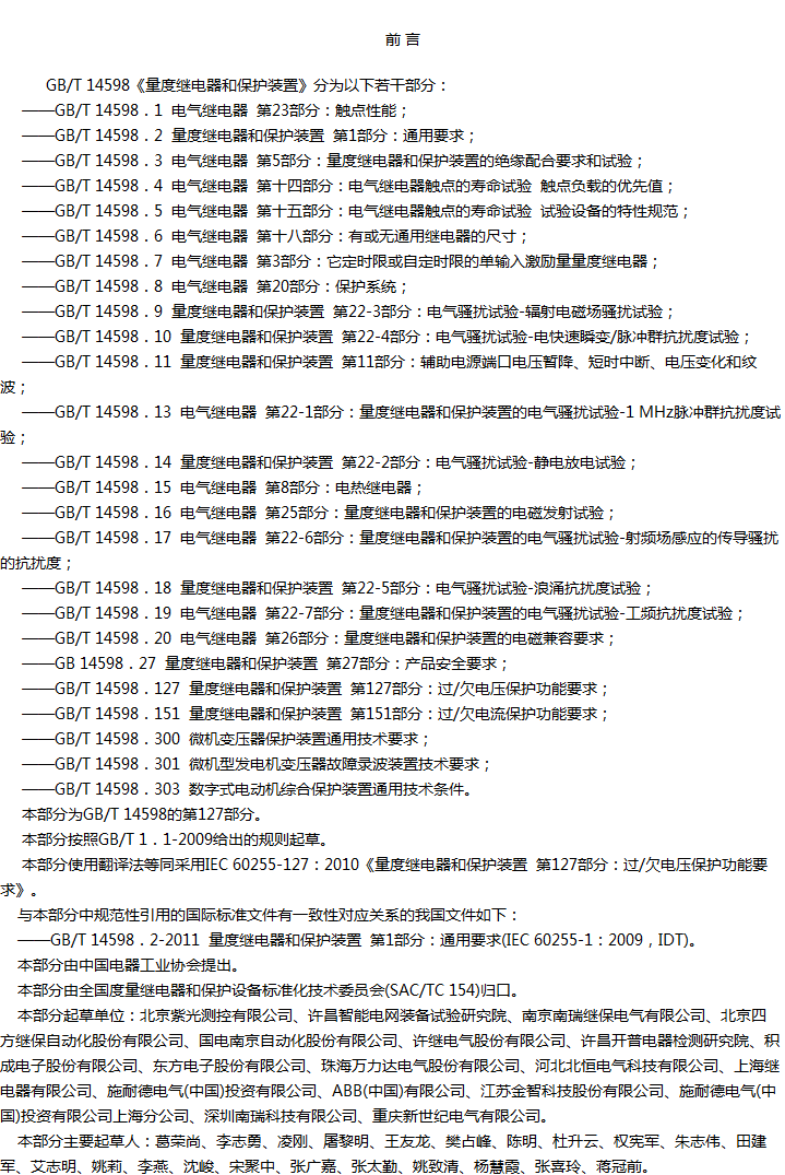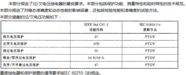 量度继电器和保护装置 第127部分:过/欠电压保护功能要求