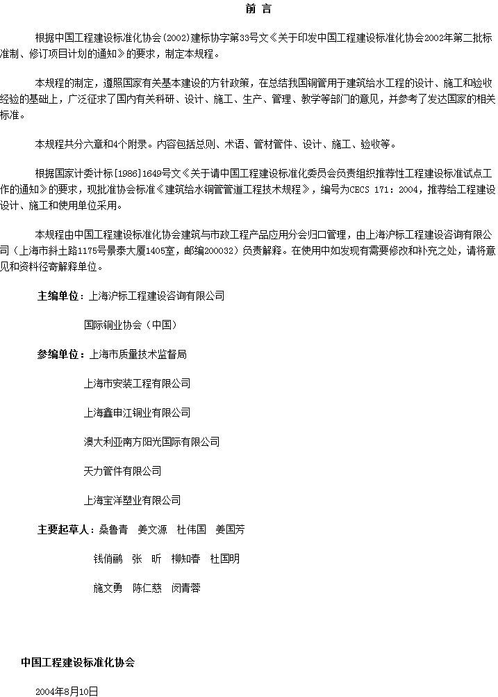 建筑给水铜管管道工程技术规程收藏