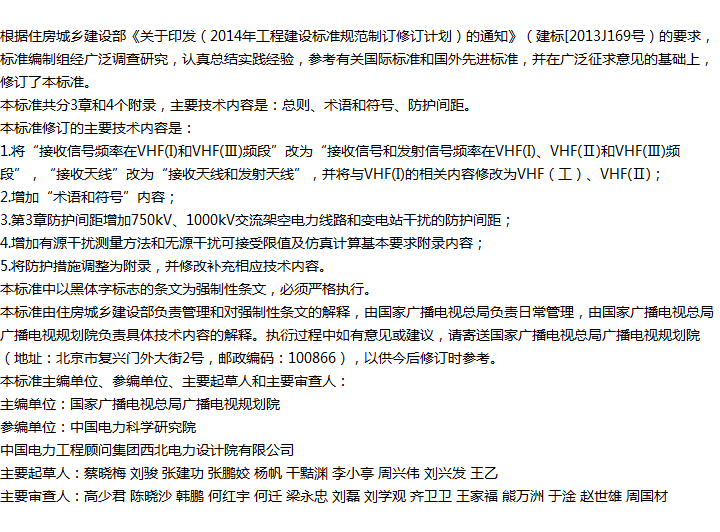 架空电力线路、变电站(所)对电视差转台、转播台无线电干扰防护间距标准收藏