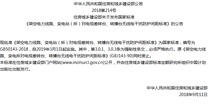 架空电力线路、变电站(所)对电视差转台、转播台无线电干扰防护间距标准
