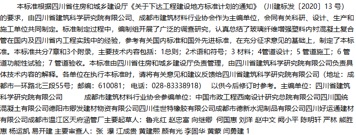 四川省玻璃纤维增强塑料内衬混凝土复合管应用技术标准收藏