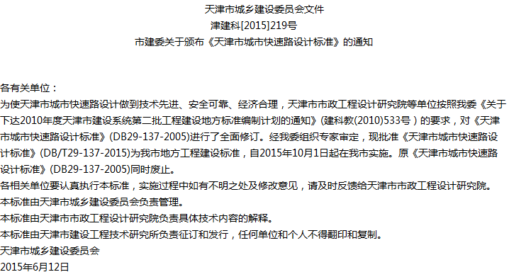 天津市城市快速路设计标准收藏