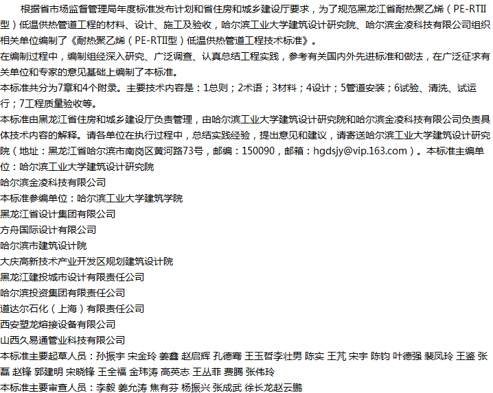 耐热聚乙烯(PE-RTII型)低温供热管道工程技术标准收藏
