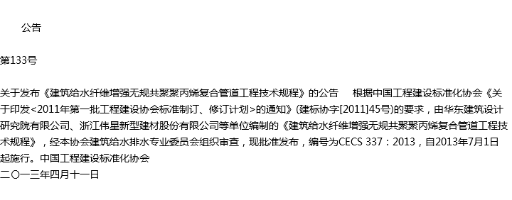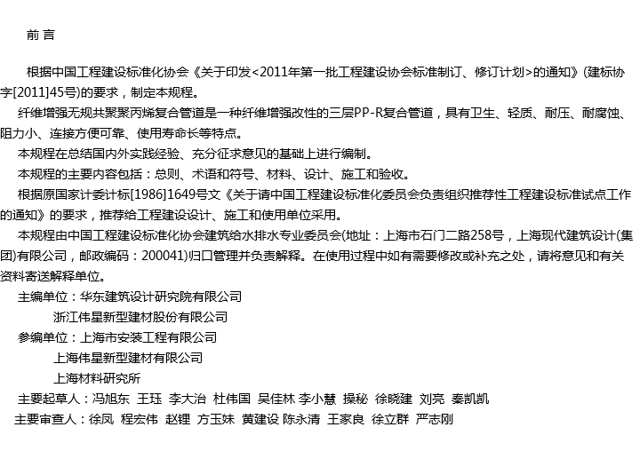 建筑给水纤维增强无规共聚聚丙烯复合管道工程技术规程收藏