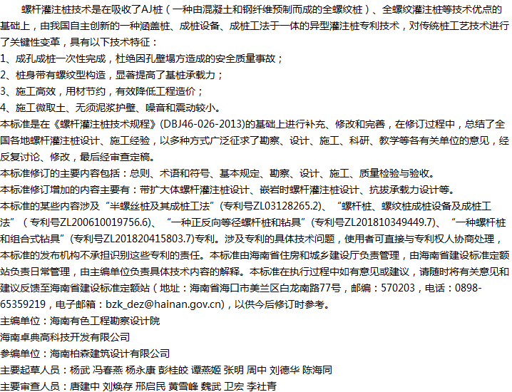 当前位置:首页 > 标准规范 > 海南省螺杆灌注桩技术标准 <返回