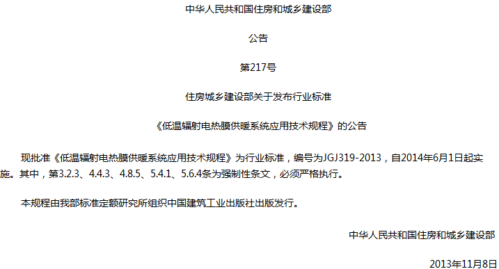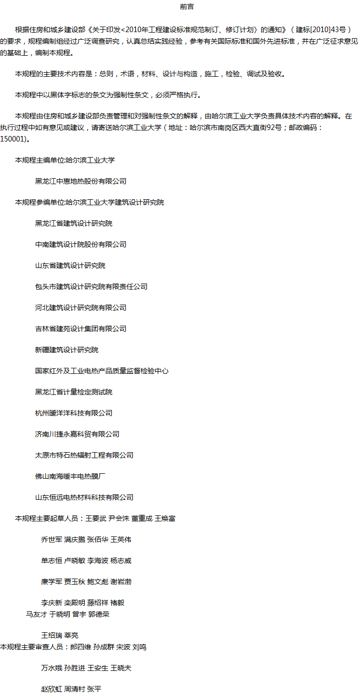 低温辐射电热膜供暖系统应用技术规程收藏