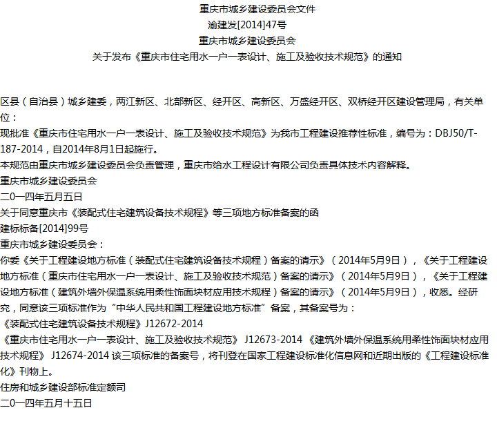 当前位置:首页 > 标准规范 > 重庆市住宅用水一户一表设计、施工及验收技术规范 <返回