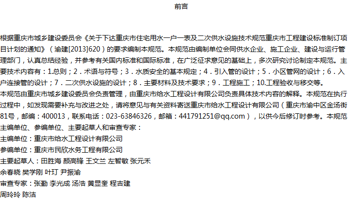 重庆市住宅用水一户一表设计、施工及验收技术规范收藏