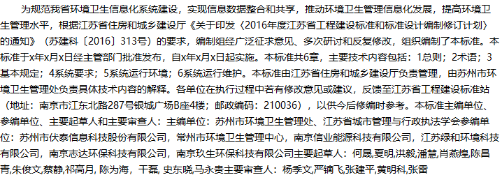 当前位置:首页 > 标准规范 > 江苏省环境卫生信息化系统技术标准 <返回