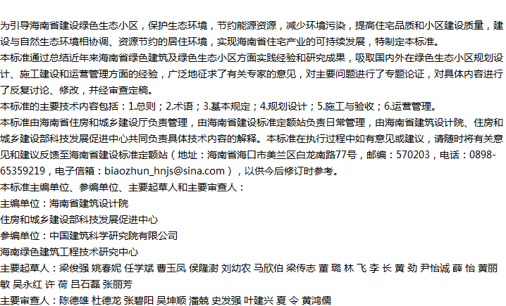 当前位置:首页 > 标准规范 > 海南省绿色生态小区技术标准 <返回