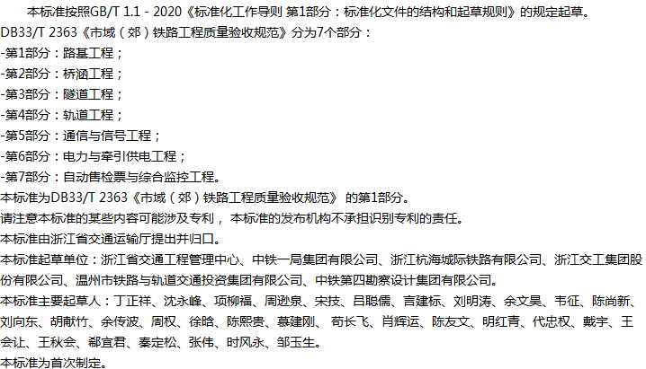 市域(郊)铁路工程质量验收规范第 1 部分:路基工程收藏