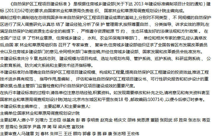 自然保护区工程项目建设标准收藏