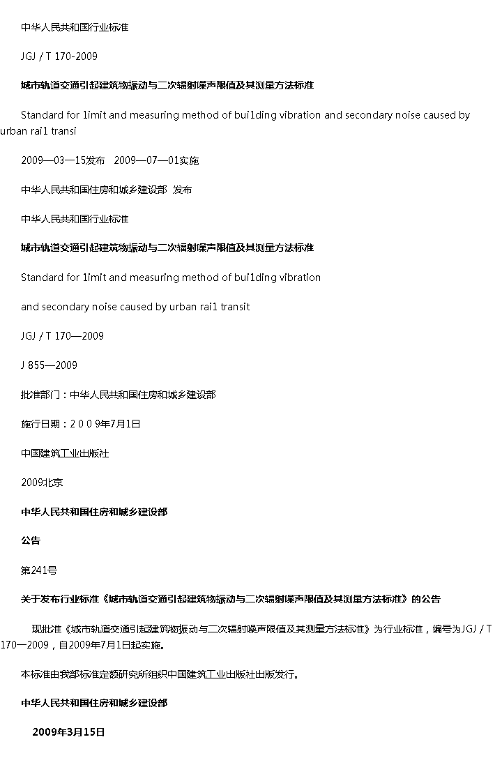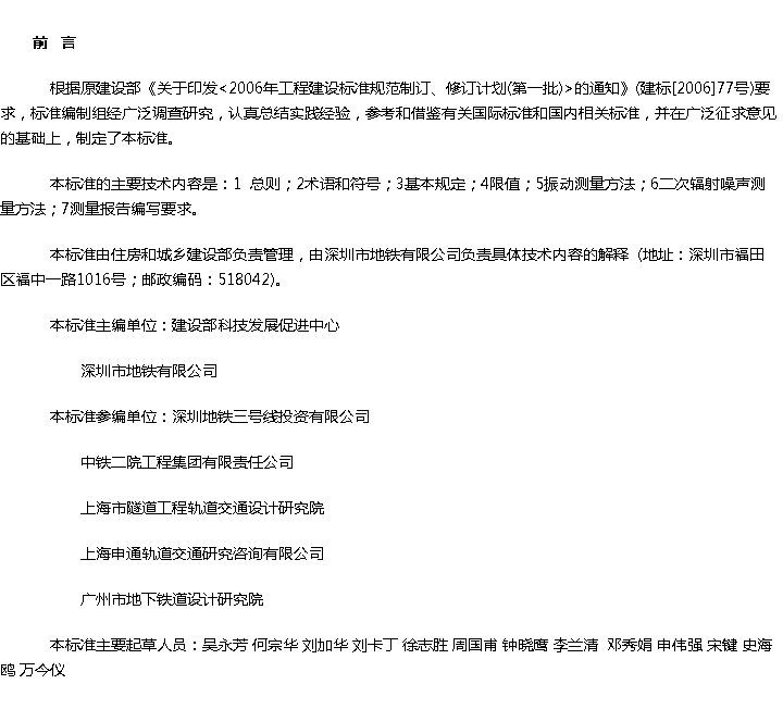 城市轨道交通引起建筑物振动与二次辐射噪声限值及其测量方法标准收藏