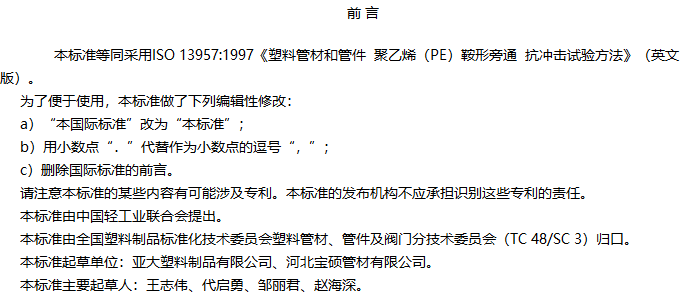 塑料管材和管件 聚乙烯(PE)鞍形旁通 抗冲击试验方法收藏